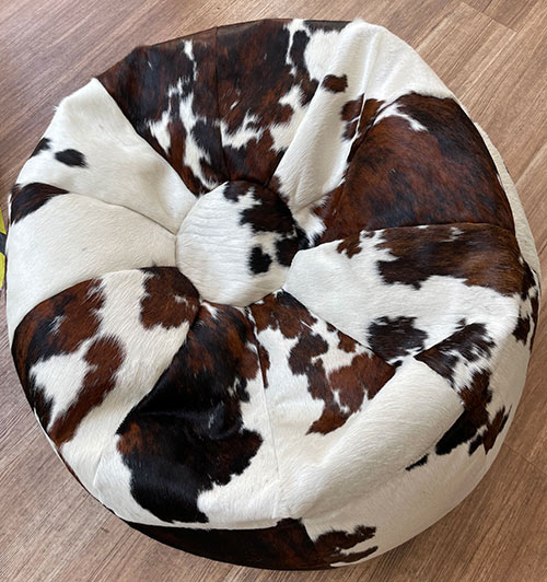 More recently Nick was asked if it was possible to make a Guernsey Cow Cowhide Beanbag – the challenge was, our hides are not actually able to be tanned on Guernsey so English “Guernsey” breed are used. It turns out that it takes two large cowhides to make one large beanbag and there are also lots of off cuts left over. Thus the small gift ideas came to the forefront.