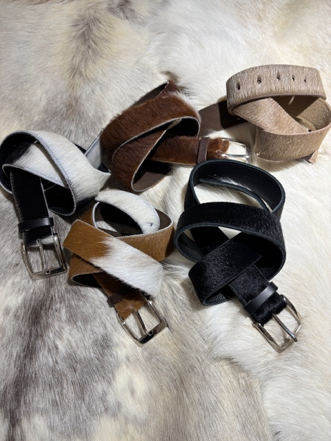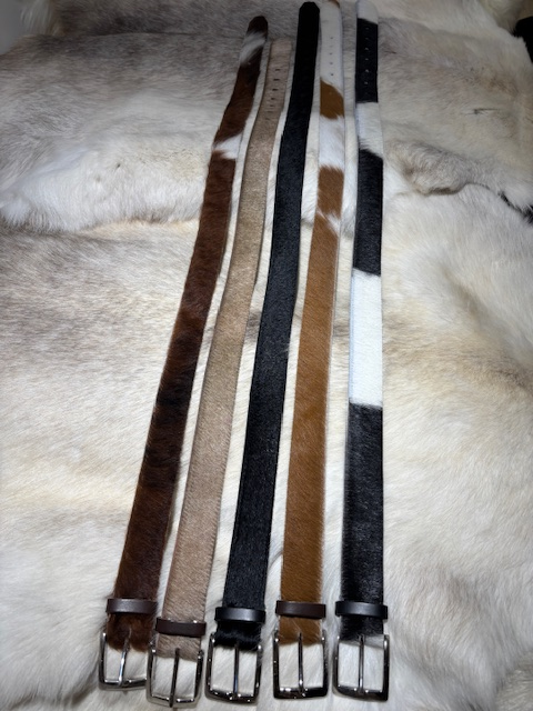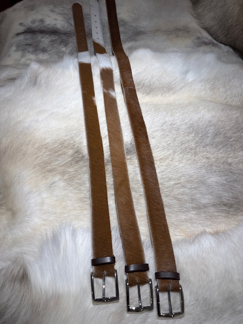 Golden Guernsey Cow cowhide Belt. The Guernsey cowhide belt makes a bold yet practical statement. Its beautiful style and natural texture offer strength, comfort, and rustic charm. Whether you wear it with jeans or tailored trousers, it adds depth and character to your look.