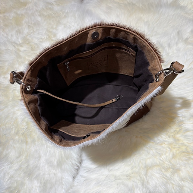 Guernsey Cow Exclusive Somerset Cowhide AG Messenger Bag By Guernsey Treasures. Handmade in Great Britain, crafted by skilled artisans using traditional methods, made with care and precision. Each of our bags are unique as every cowhide is different. In addition to this, we use only the very highest quality and beautifully distinctive marked cowhides, combining luxury with practicality. What makes it truly special is that they are all 100% byproducts, upcycled, biodegradable and hypo-allergenic. Ethical materials, responsibly produced. Each have a matching colour, adjustable leather strap and magnetic popper fastener. Inside the bag, you’ll find thoughtfully designed compartments, including a secure zippered pocket and a built-in key fob, so your essentials stay organized and your keys never go missing. They are fully lined and have a distinctive Avant Garden Guernsey leather label stitched inside.