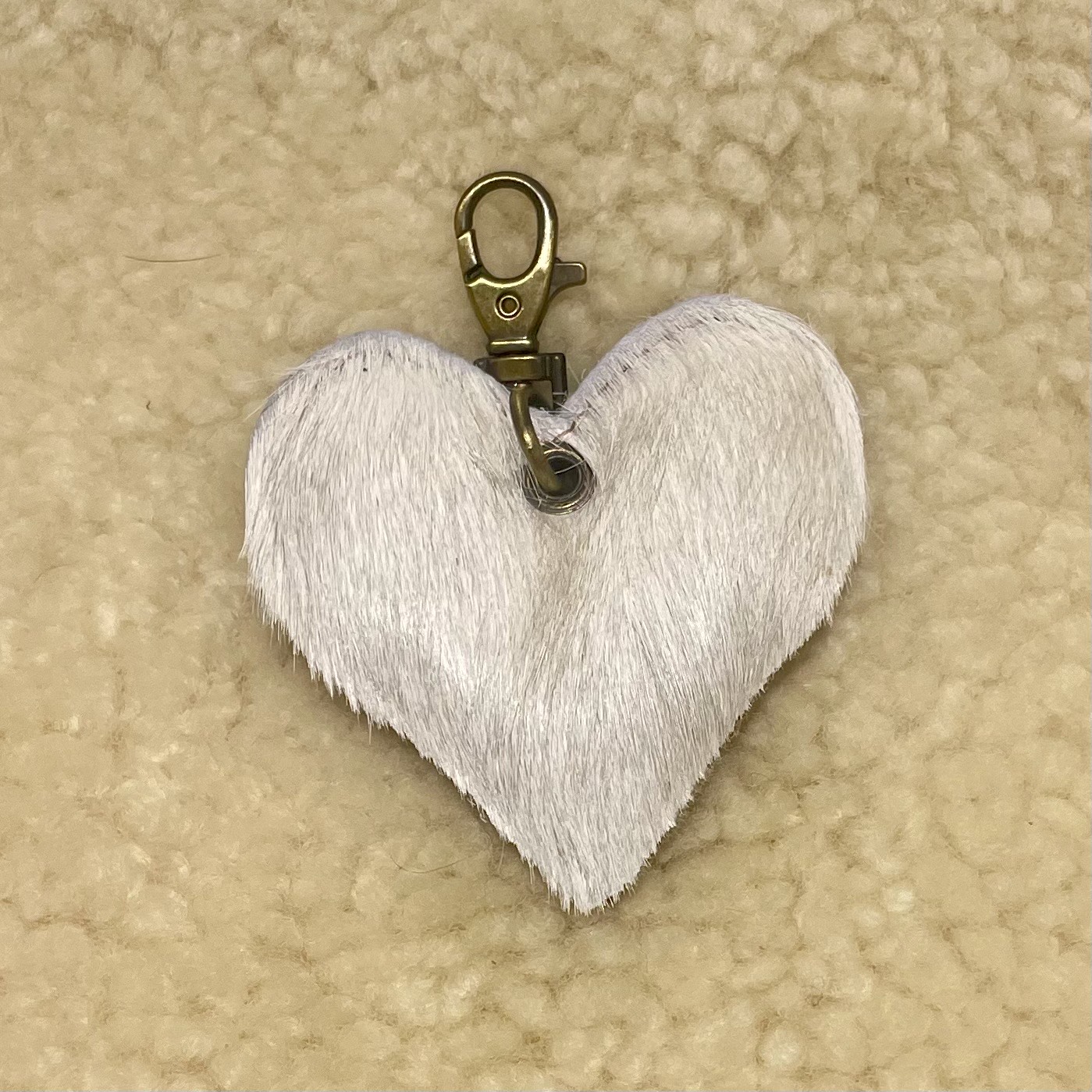 White Guernsey Cow Cowhide Heart Keyring By Guernsey Treasures
